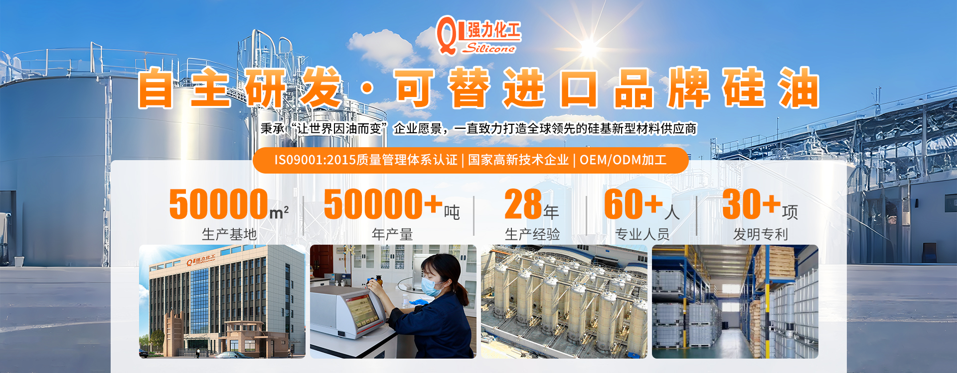 ◎ 黃山市強(qiáng)力化工有限公司是一家專注于有機(jī)硅新材料,集研發(fā)、生產(chǎn)與銷售為一體的綜合性高新技術(shù)企業(yè)。公司已是有機(jī)硅行業(yè)內(nèi)較為知名的品牌,傾力于打造高品質(zhì)有機(jī)硅產(chǎn)品:二甲基硅油、乙烯基硅油、氨基硅油、乳化硅油、羥基硅油、含氫硅油與紡織品硅油等。砥礪前行,踔厲奮發(fā),強(qiáng)力純硅油,更高技術(shù),更好硅油。秉承“讓世界因油而變”企業(yè)愿景,一直致力打造全球領(lǐng)先的硅基新型材料供應(yīng)商。